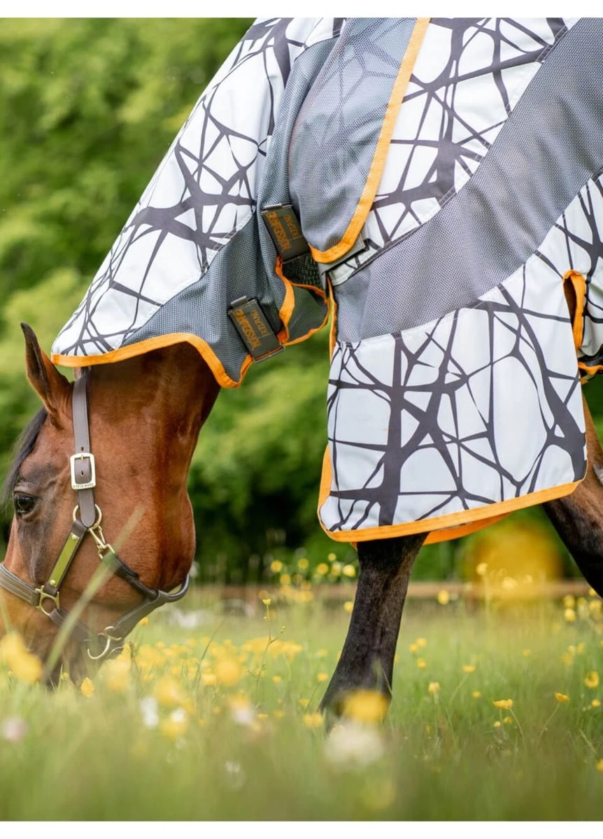 - Unique Fly Deterrent Print Design. Camouflages the horse from pesky bugs and flies.
