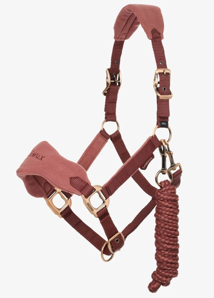A lovely soft headcollar featuring fleece inserts at the poll strap and nose band. These fleece inserts ensure even pressure distribution and are fitted with an extra padding for greatest possible wearing comfort. Cheek straps lined with fleece. Multi adjustable at the curb and poll strap (adjustable from both sides).