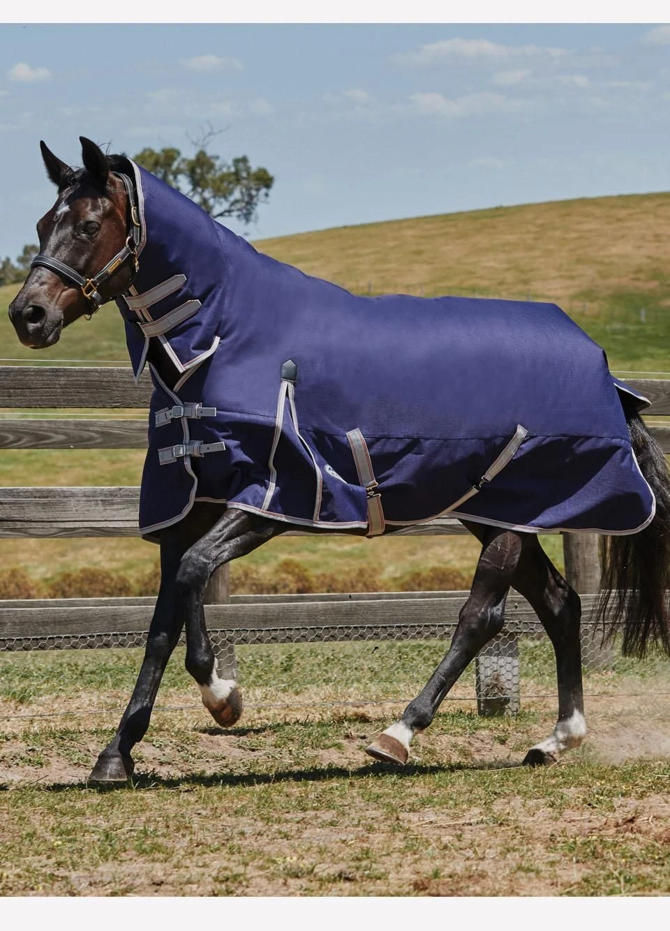 The 1200D Ripstop outer has a repel shell coating that is both waterproof and breathable and the removable leg straps make the rug versatile if your horse objects to the straps between his legs. It has two front buckle fastenings, the attached neck is velcro fastened and will keep your horse clean and cosy, while the shoulder gusset feature on this rug is appealing to most shapes of horse and it has a standard tail flap along with cross surcingle fastening.