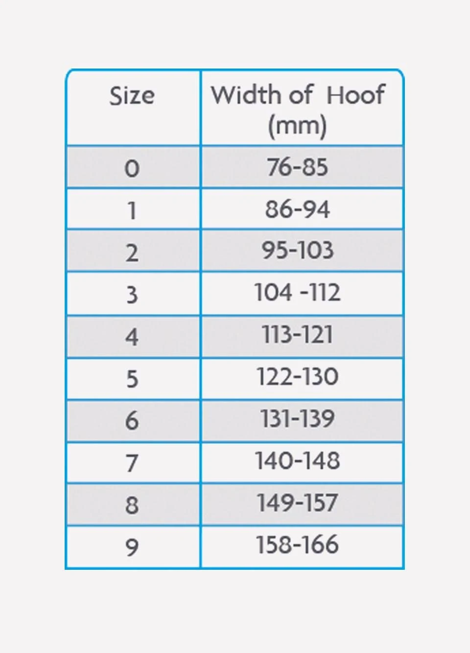 Quite a few sizes are available to cover the spectrum of hoof sizes